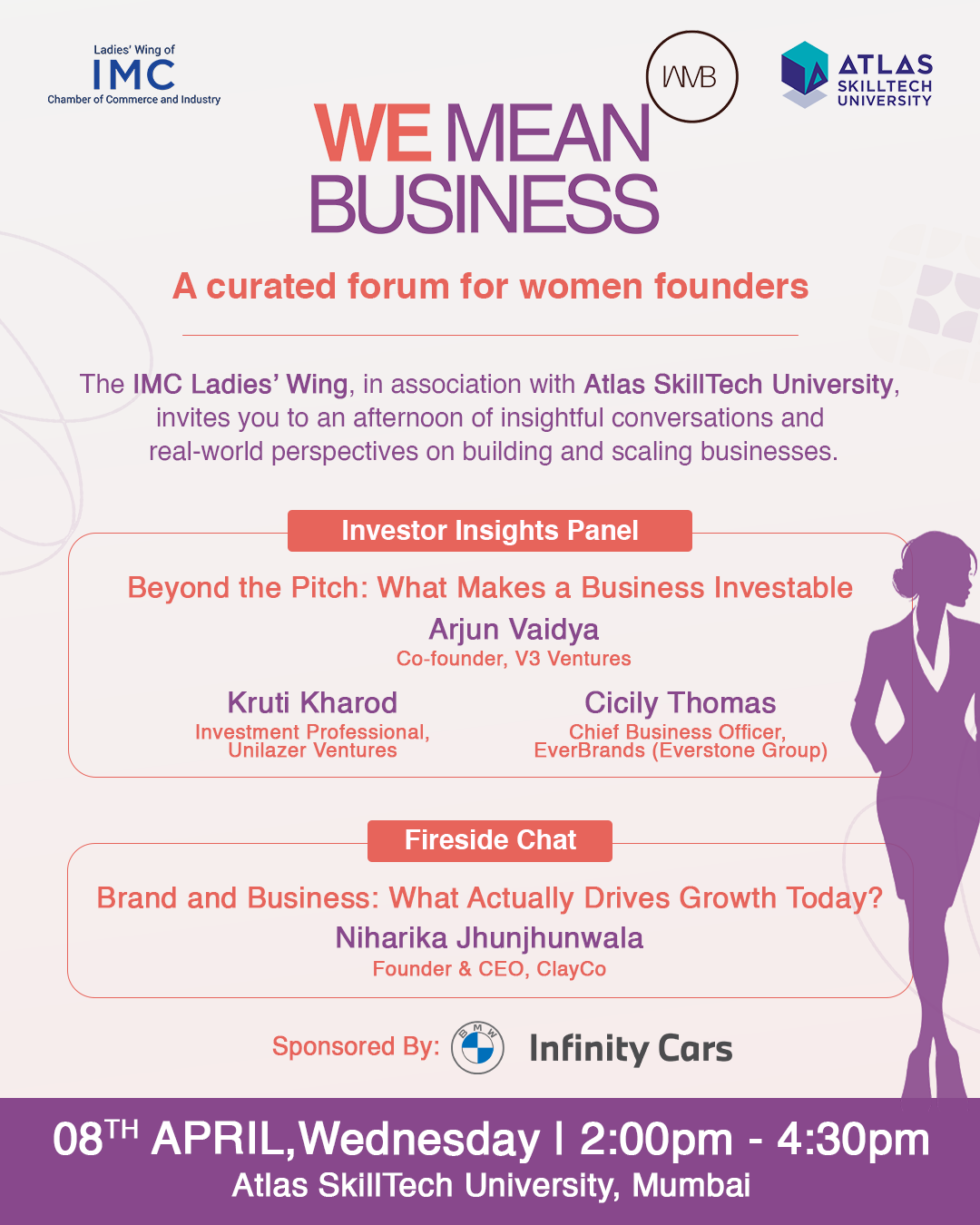 WE Mean Business - Hosted by IMC Ladies' Wing & ATLAS SkillTech University, WE Mean Business is a curated forum for women founders to engage in honest... conversations about building and growing businesses. It brings together entrepreneurs, industry experts, and mentors to foster meaningful connections, share insights, and enable collaborative learning in a supportive environment.